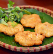 Sau khi giã nhuyễn bạn dùng găng tay nilon, xoa thêm một ít dầu ăn và vắt thành các miếng chả dẹt vừa ăn.